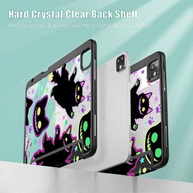 Lepeoac Case for iPad Pro 11 inch (4th, 3rd, 2nd & 1st Gen) 2022 2021 2020 2018, Buit in Pencil Holder with Shockproof Cover Clear Shell + Auto Wake/Sleep, Creepy & Funny Cats