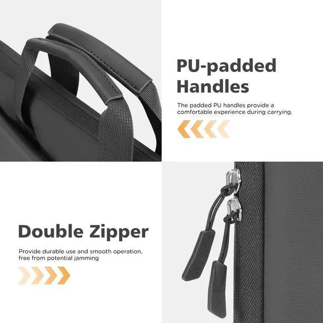 ^^ NIDOO laptop sleeve bag comes with double PU handles enable you to carry it in comfort. A luggage belt on the back can be fixed on the handle of the suitcase, thus to realize hands-free transportation. Ultra-slim design make it flexible enough to fit in a backpack or suitcase, a great choice for daily use, business, and travel.