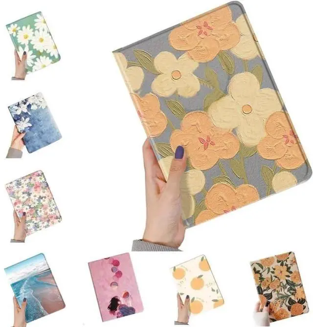 Floral iPad Case Flower Pattern Cute Slim Leather Folio Smart Cover with Pencil Holder