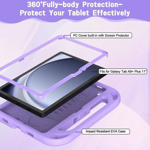 Perfect CompatibilityExclusively designed for Samsung Galaxy Tab A9 Plus Case 11 inch 2023 Release (SM X210/X216/X218)), please kindly check the model number on your samsung a9+/a9 plus tablet. ^^ Built-in Screen ProtectorSamsung Galaxy Tab A9 Plus Case, with built-in screen protector, protect samsung tab a9 plus 11" 2023 tablet screen from damage and scratches without affecting sensitivity. ^^ Full iPad Body ProtectionSamsung Galaxy Tab A9 Plus Case for Kids, made of shock-absorbing EVA material, light weight yet durable, provides decent protection for samsung tab a9+/a9 plus tablet 2023. ^^ Accurate Cutouts Snug FitGalaxy Tab A9 Plus Case for Kids, with accurate cutous ensure easy access to all buttons, ports, sensors, speakers and camera.