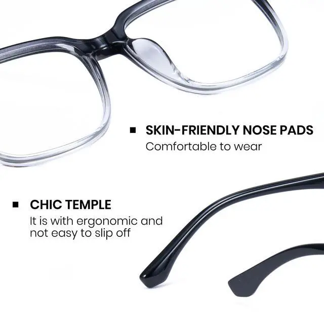 Durable TR90 Frame: Crafted from ultra-lightweight TR90 material, these oversized square glasses are designed for all-day wear without pressure. The flexible frame gently adapts to your face, reducing temple tension and preventing nose bridge marks. At just a feather-light weight, they deliver lasting comfort whether youre working, studying, or relaxing. ^^