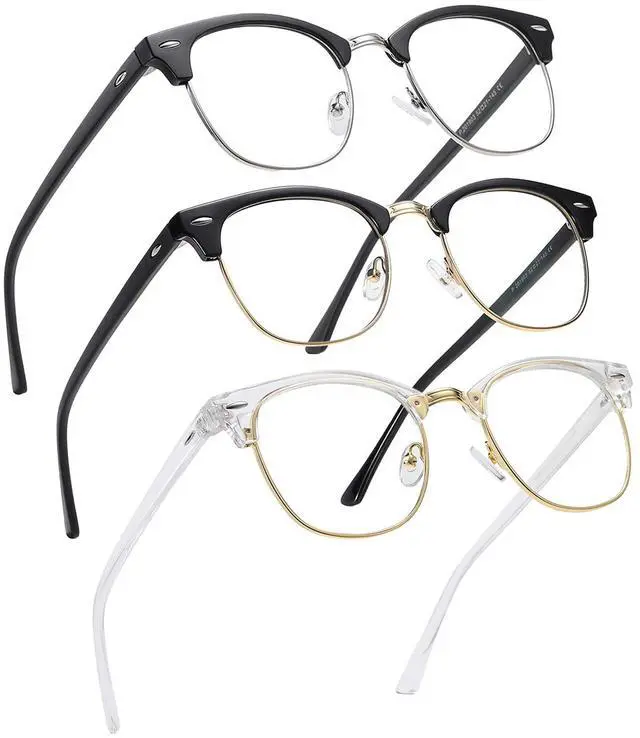 • High-quality material: Our lenses can not only block more than 95% of harmful blue light (400-440nm), but also have a high transmittance (95%), achieving a perfect balance between eye protection and visual experience. The durable retro fashion half-frame design and silicone nose pads will not put pressure on your nose, ensuring long-term comfort.