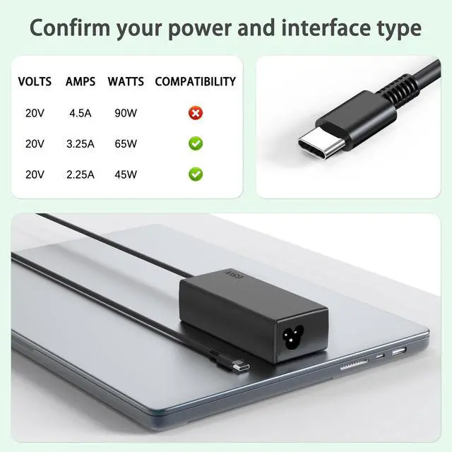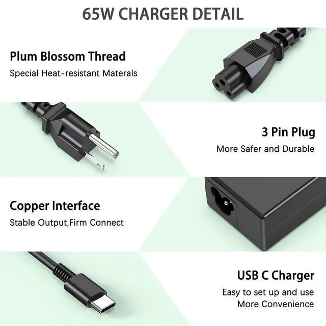Power: 65W ( Compatible with 65W 45W Computer Charger Type C ) ^^ heesky USB C Laptop Charger Compatible with Chromebook X360 11 12 14 15 Series 11-ae051wm 11-ae001tu 11-ae027nr 11-ae001nr 11-ae002nr 11-ae044cl 11-ae051wm 11-ae091wm 11-ae110nr 11-ae010nr 11-ae020nr 11-ae027nr 11-ae030nr 11-ze040nr 11-ae120nr 11-ae131nr 13-v111dx 13-ae013dx 13-ac023dx 13-v011dx 13-w023dx 13-w013dx 14-ca061dx 14-ca052wm 14-ca051wm 14-ca020nr 14-ca060nr 14-ca043cl 15-de0010nr 15-de0043dx 15-de0517 15-de0010br 15-de0021cl 15-de0035cl and more ^^ heesky Type C Computer Charger Compatible with ThinkPad T470 T470s T480 T480s T490 T495 T590, X270 X380 X390 X395 X1 Carbon 5th 6th 7th Generation, L390 L480 L490 L580 L590; Yoga S730 720 730 910 920 720-12IKB 720S-13IKB 730-13IKB 910-13IKB 920-13IKB, X270 X280 X380 X390 X395 Yoga, X1 Tablet 2nd 3rd; Flex 11 Chromebook, 13 Chromebook 2nd Generation; 100e 300e 500e C330 C340 S330 S340 C930 C940 C740 Yoga ^^ heesky USB C Laptop Charger Compatible with Dell Chromebook Latitude 5420 5320 5520 3500 3400 3100 3300 5300 5400 5500 7200 7300 7400 5190 2-in-1 P28T P29T P86F; heesky USB-C Laptop Charger Compatible with Dell XPS 12 925 XPS 13 9360 9350 9365 9370 9380, Compatible with Dell XPS 13 Laptop, Latitude 7275 7370 5175 5285 5290-2in1 7390-2in1 Series Notebook ^^ heesky Computer Charger Compatible with Spin 11 13 R13 15 311 315 CP311 CP713 C933 CB5-312T R751T SF713 SP714 CB311 CB314 CB314 CB514 CB515 CB714 CB715 CP5-471 CP311 CP315 CP511 CP713 R721 R751 R752T R851
