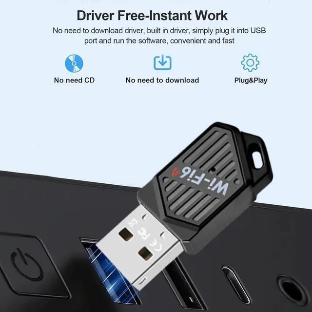 ^^ Built-in Driver, Instant Works You plug it into a USB port and it shows up as a small drive with the driver software already on it. After running the installer, both WiFi and Bluetooth are ready to use within a couple minutes. No hunting for drivers online or dealing with complicated software. ^^ Bluetooth 5.4, Fast Connection This PC wifi adapter includes Bluetooth 5.4, allowing you to easily connect up to 5 wireless devices like headphones, speakers, keyboards, printers with a stable range up to 32 feet, It supports low latency and automatically reconnects without needing to pair again.