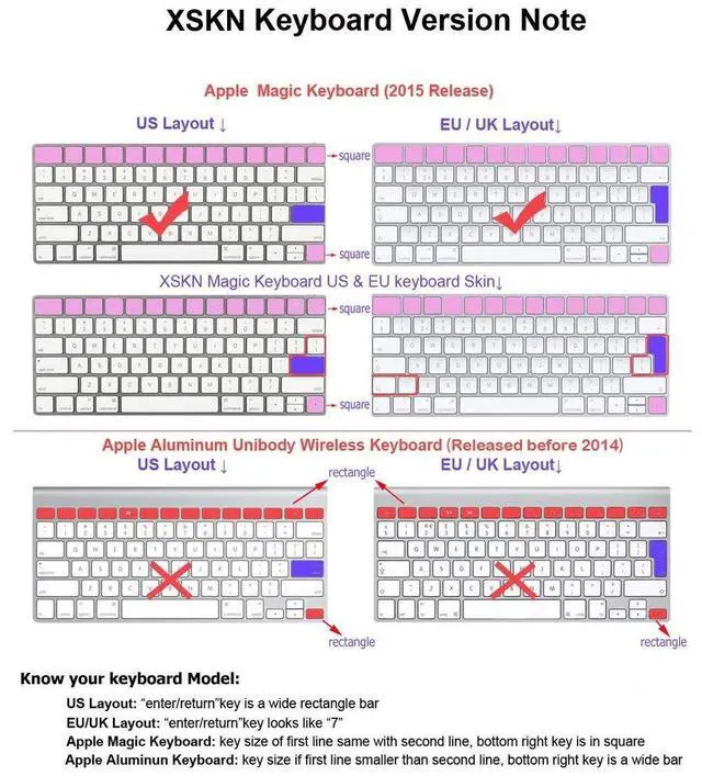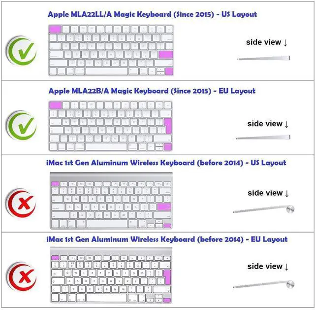 Compatible device: -for Apple Magic Keyboard, US Layout (Model MLA22LL/A)-for Apple Magic Keyboard, EU Layout (Model MLA22B/A)Fit for both US and EU Layout Magic keyboardUS