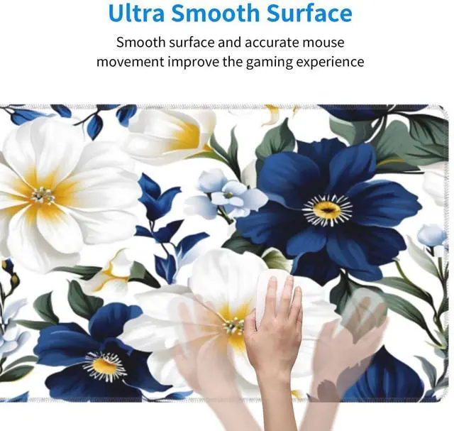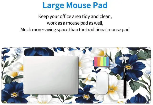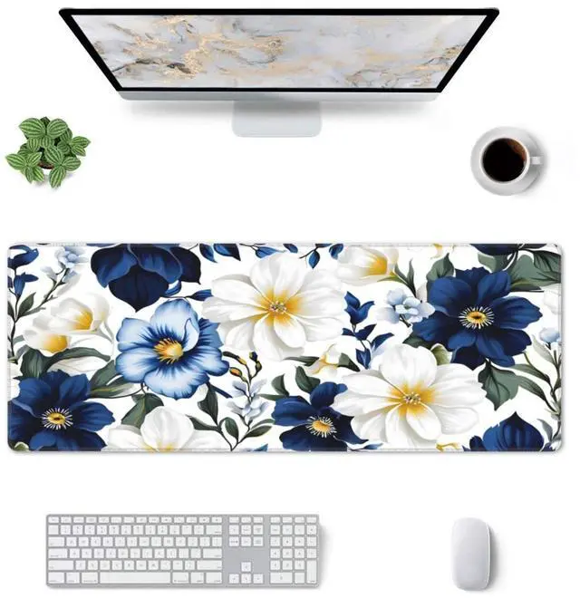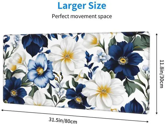 CANFLASHION Desk Pad,Office Desk Mat 31.5"11.8" Large Gaming Mouse Pad,Durable Extended Computer Mouse Pad,Waterproof Thick Big Mouse Pads Non-Slip Rubber Base Office Home White Blue Floral