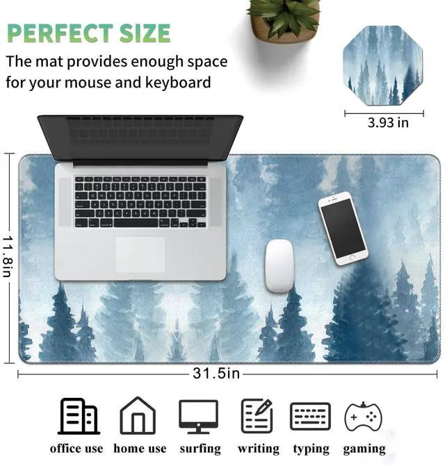 Tired of running into your keyboard? Come and add a perfect table mat for your keyboard! Our Mouse Pad is designed to make game play and office work much more comfortable. Large mouse mats allow technology lovers to place both keyboard and mouse in one spot. Why choose us? The size of 31.511. 8 inch is perfect for anyone who needs the maximum amount of mouse space. This full desk mousepad can protect your desktop from scratches and damage. Premium PU leather materials provide comfortable experience for your wrists and hands.