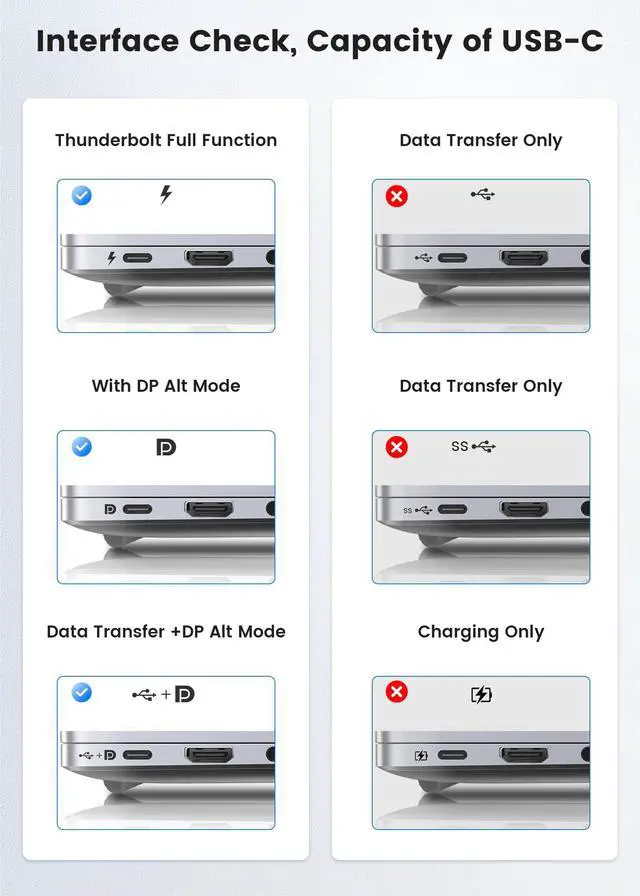 (NOTES: NOT an HDMI Port) ^^ Wide CompatibilityFor Type C ports with video output function and Thunderbolt 3 & 4 Ports. Compatible with MacBook Pro 2016-2021, MacBook Air 2018-2022, iMac 2017-2020, iPad Pro 2018-2021, iPad Air 4/5, iPad mini 6, Galaxy Fold Series/A90/ S22/S21/S20/S10/S9/S8, Note 20/10/9/8, Galaxy Tab S9/S8/S7/S6/S5e/S4, Surface Book 2/3, Surface Go/ Go 2/Go 3, Surface Laptop 3/4/SE/Go/Go 2/studio, Surface Pro 7/ 7+/ 8/X, Dell XPS 17/15/13, LG V40/V35/V30/V20/G8/G7/Q8 and more. ^^ Plug and PlayThe perfect cable to connect your USB-C ( support video output) computer to your DisplayPort monitor. Mirroring and extension modes allow you to display on a larger screen or work on multiple screens. Clamshell mode compatible with MacBook Pro/MacBook users and Multi-Stream Transfer (MST) compatible with Windows computer users. ^^ Worry-Free 30 days refund, 24 months warranty. FOINNEX is created for professional audiovisual connection and multimedia conversion products, providing customers with high-quality products and experiences.