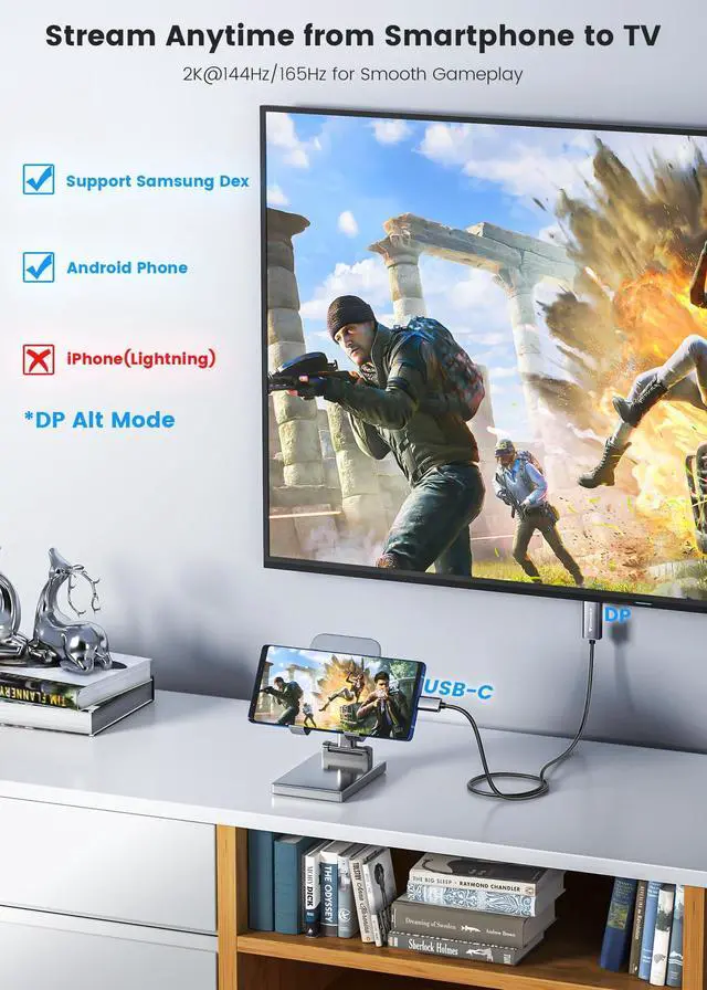 4K@60Hz UHDSupport high refresh rates up to 2K@165/144Hz (2560*1440), 1080P@240Hz (1920*1080). Support Adaptive-Sync technology (G-sync/Freesync) to eliminate lags and screen-tearing to help you achieve maximum performance in gameplay. Compliant with HDCP 2.2 enables you to stream 4K protected content from video platforms like Netflix, HBO Max, Disney+, etc. ^^ Unidirectional Display PortThis USB-C to DisplayPort cable only works to convert from USB-C source to DP display. One-way transfer, follow the correct transmission to ensure you can enjoy live events or your favorite shows on a larger screen. Display Port is Similar to a flat rectangle with a missing corner.