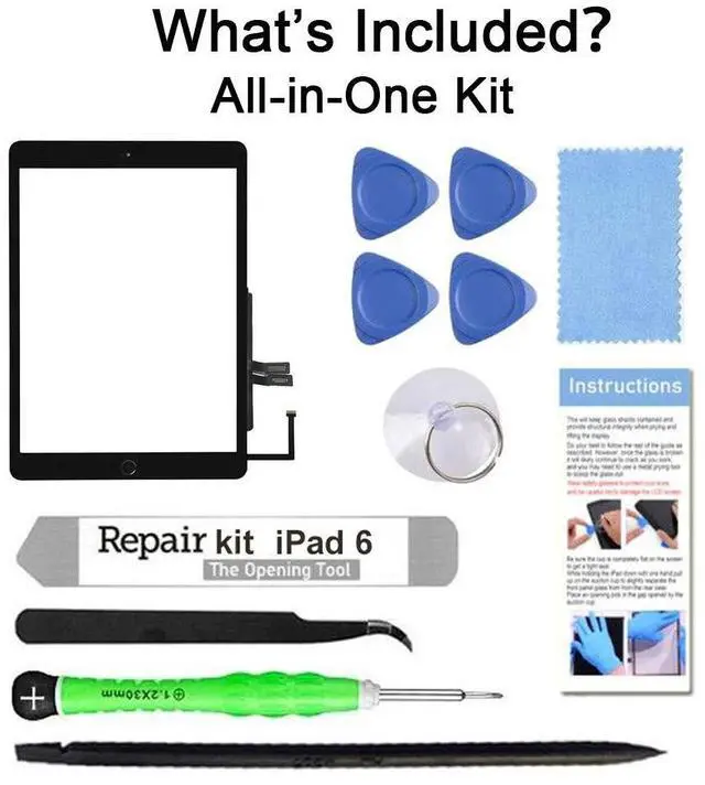 Package List: 1 * New Glass Touch Screen Digitizer Replacement (Pre-installed Home Button, Adhesive and Camera Bracket ) 1 * Free DIY Tools with Instruction Manual. Why choose us- Save Your TimeThe adhesive, front facing camera bracket, and home button already installed. We also provide helpful step-by step instructions and guides. Make your installation easier and save your time! -Save Your MoneyThe kit comes with all the tools that necessary to repair your iPad screen. You don't need to buy them separately. Save your money! -Brand New&High QualityThe touch screen made of premium materials. Anti-shatter glass, highly durable and scratch resistant. Test 100% work perferly before sent. - Risk free purchase30-Days-Money Back Guarantee. For any inquiries regarding the product or service, please contact us and we will do our best to solve your problem.