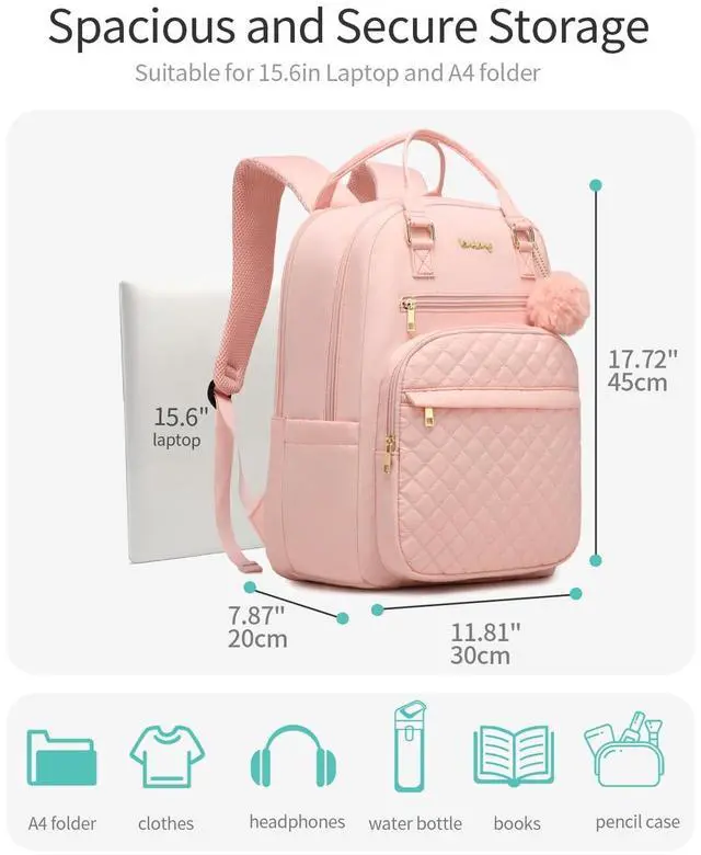 All Your Needs: Featuring a separate padded laptop compartment that holds and protects a 16 / 17 inch laptop, ensuring your tech stays safe on the go. The large main compartment is roomy for daily necessities, such as folders, text books, lunch box and electronic. Quick access front pockets are perfect for keeping all of your smaller items secure. On the outside, it has two water bottle pockets and a back anti-theft pocket for secure storage ^^