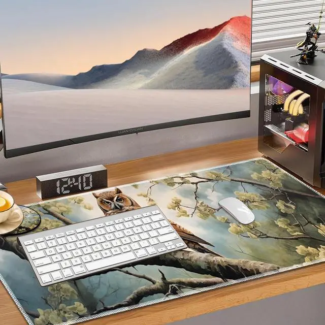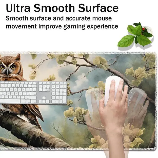 Large Mouse Pad, 31.5 x 11.8in Extended Gaming Mousepad, Edge Stitched and Non-Slip Rubber Base Foldable XXL Mousepad, Office and Home Writing Mat, Owl in Tree