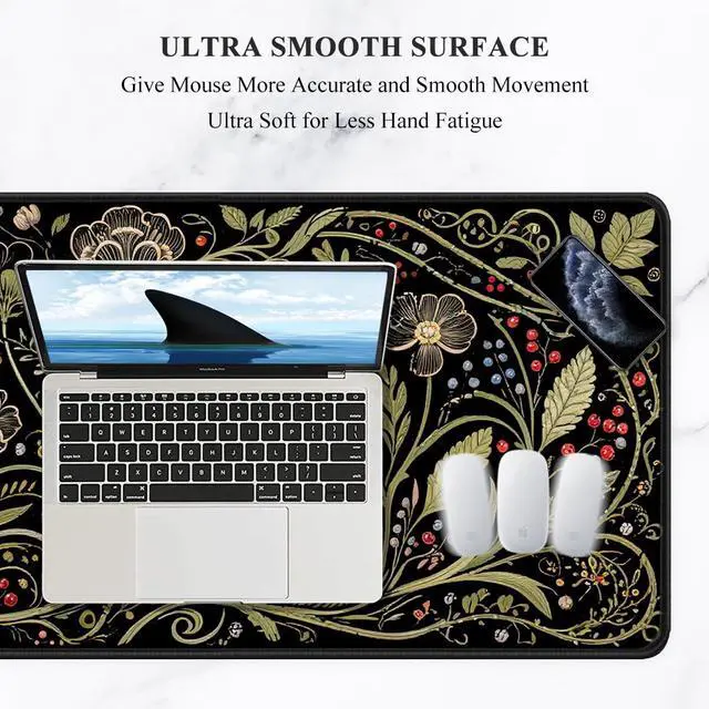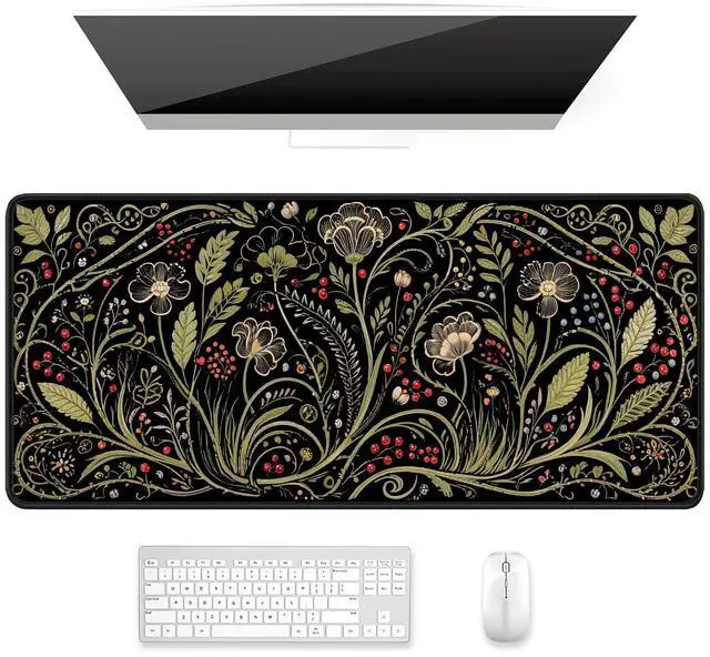 Auhoahsil Desk Mat, Ultra Large Mouse Pad, XXL Gaming Mousepad, Pretty Desk Pad, Big Extended Full Size Desktop Desk Matt for Keyboard, Laptop & Computer, 35.5 x 15.7 in, European Vintage Flowers