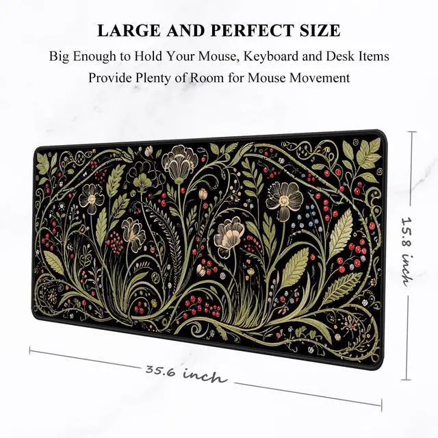 Large and Perfect Size: The long mouse pad measures 35.4 15.7 x 0.12 inches, it is large enough for the mouse to move around, and has ample space to accommodate your keyboard, mouse, laptop, or other desktop essentials. Give you a professional working and gaming atmosphere and keep your desk clean