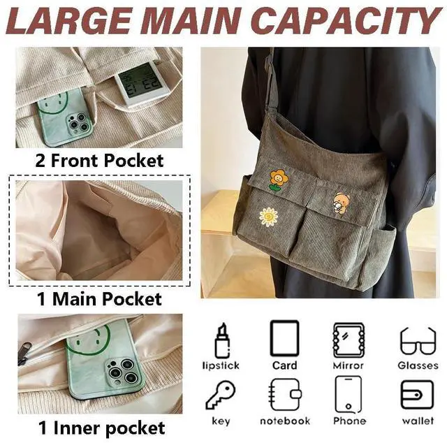 DescriptionSongKedora Corduroy Cute Messenger Bag Multiple Pockets Casual Large Hobo Bag Satchel Crossbody Bag