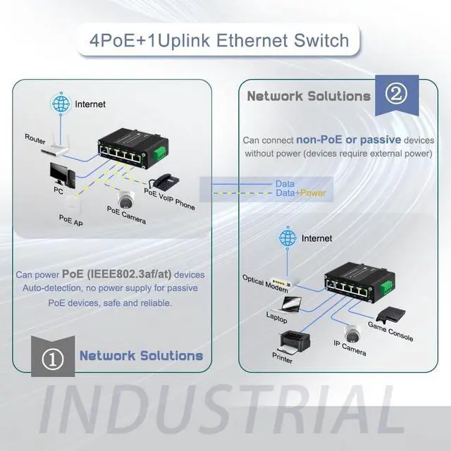 ^^: The managed 5 port PoE industrial switch is ideal for industrial networking, intelligent transportation systems (ITS) and are also suitable for many military and utility market applications.