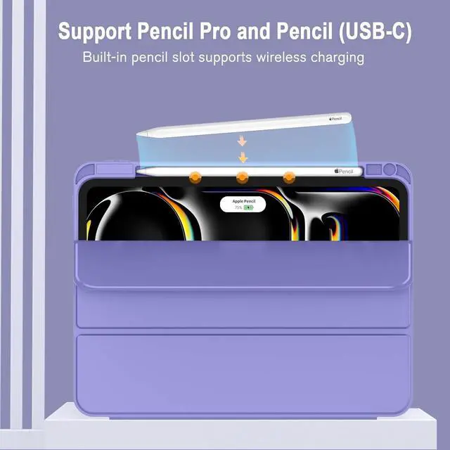 [Supports Pencil Pro and Pencil (USB-C)] This iPad Pro case fully supports Pencil 2 with a recessed side groove for magnetic charging and a magnetic clasp to keep your Pencil secure