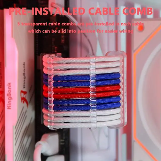 • Pre-installed Cable Comb DesignEach extension cable comes pre-fitted with three transparent cable combs made of PC material for a more refined look. Simply slide the comb's position for hassle-free cable arrangement. An extra set of white cable combs are also provided for customization