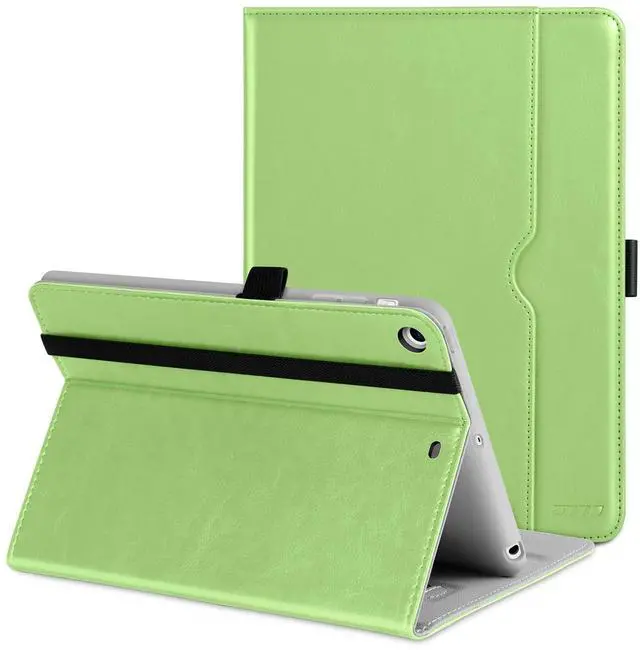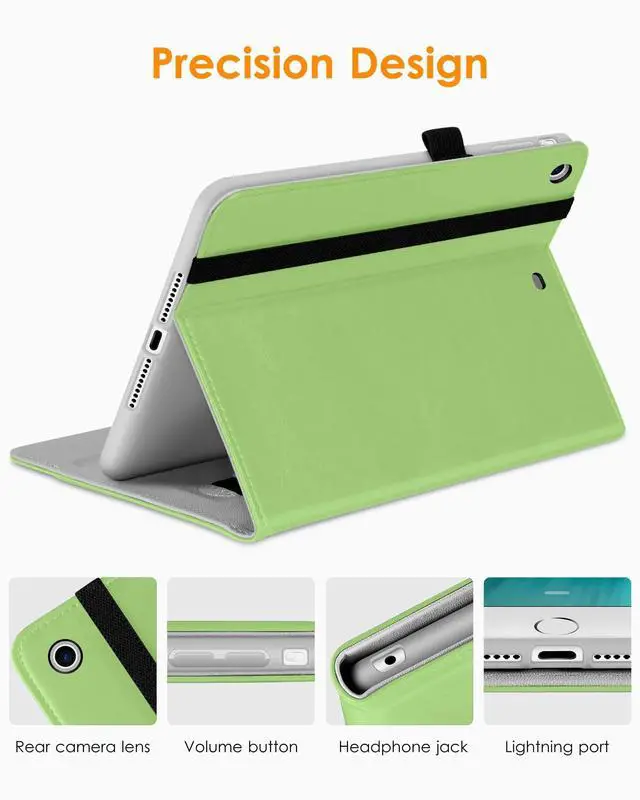 Compatibility - Designed for the iPad mini 1 (2012 release, model: A1432 A1454 A1455 ) / iPad mini 2 (2013 release, model: A1489 A1490 A1491 ) / iPad mini 3 (2014 release, model: A1599 A1600 ) ^^ Premium Graded Material - Excellent workmanship with premium synthetic leather exterior and soft microfiber interior lining. ^^ Auto Wake-Sleep Feature Magnetic smart cover supports auto wake-sleep function. ^^ Elastic Strap and Built-in slots - Able to set up multiple horizontal stand angles for comfortable facetime watching and typing. ^^ Multi-function Design - Features front document card pocket to keep notes, cash, cards; Full access to all features (Cameras, Speaker, Ports and Buttons).