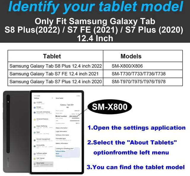 • [COMPATIBILITY] - This leather case protector is compatible with the Samsung Galaxy Tab S8 Plus 12.4 inch 2022 (SM-X800/X806), Tab S7 FE 2021 (SM-T730/T733/T736/T738), Tab S7 Plus 12.4 inch 2020 (SM-T970/T975/T976/T978). Not compatible with other devices, no pencil included.