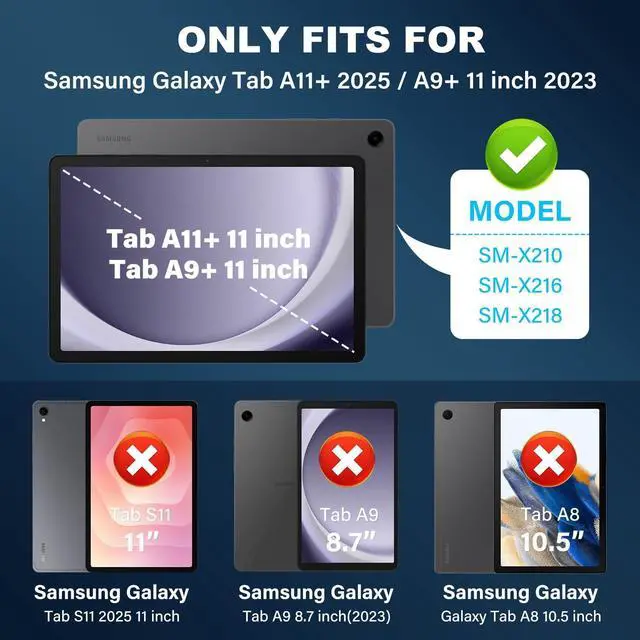 • For Galaxy Tab A9 Plus CaseONLY compatible with samsung a9 plus tablet case 11 inch 2023 released (Model: SM-X210/X216/X218).(With Screen Protector) Not fit any other tablet!