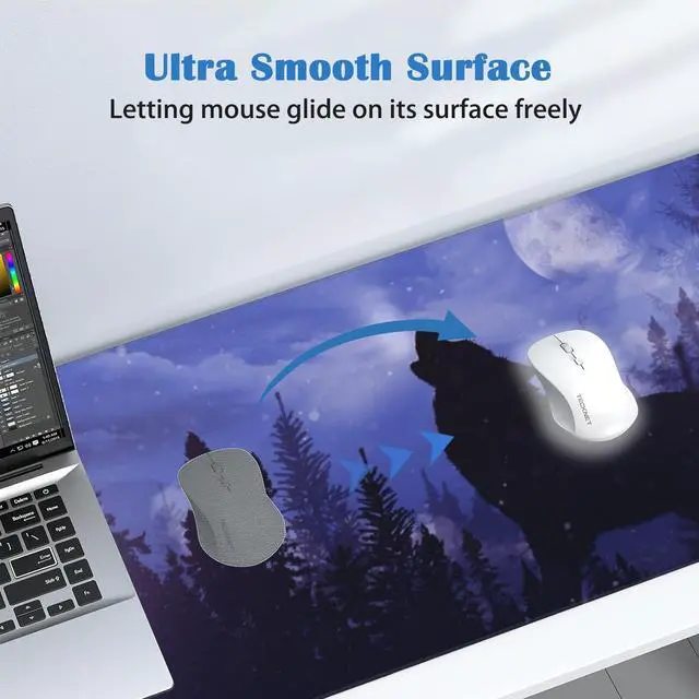 Large Mouse PadThe desk mouse pad measures 31.5 x 15.7 inch, with 2 mm thickness, big enough to accommodate your computer, laptop, keyboard and other desk items, and still leave plenty of space for your mouse to move all around. ^^ High qulity Workmanship and MaterialsThe mouse pad has delicate stitched edges, it is individually hand crafted with high quality warkmanship so not fray, deformation and degumming in prolonged use, relax to use. The computer mouse pad is thick and feels soft in the hand, which will provide comfortable support while typing, reading, writing and even sleepping.