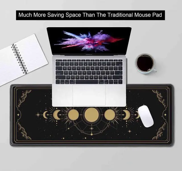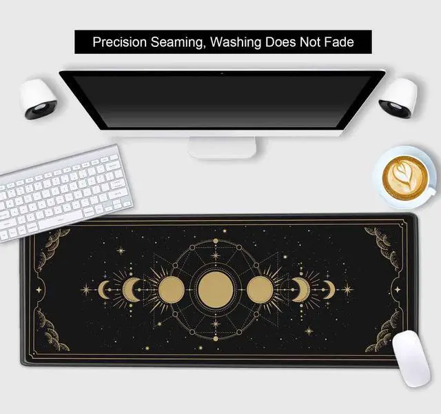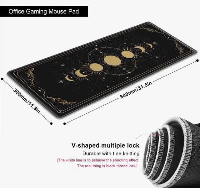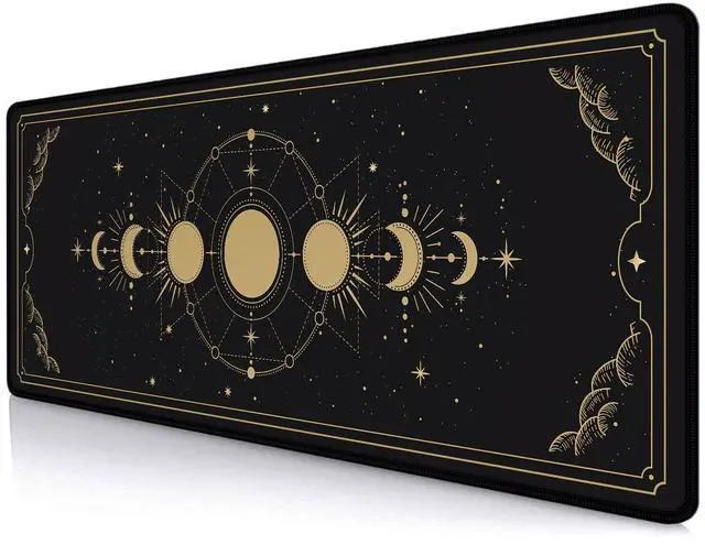 SXCKANG Moon Phases Large Gaming Mouse Pad, Celestial Cycle Lunar Chart Black and Gold Desk Pad, Stars in Space Horoscope Desk Mat, Mystical Astronomy Mousepad for Gamer Home&Office, 31.5x11.8 in