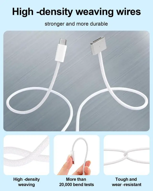 Super fast chargeThis magnetic 3 cable charging up to 140W. It can be used with PD chargers, wall chargers, car chargers, and power banks this cable ensures you're powered up quickly and efficiently, with an LED charging indicator to keep you informed. ^^ Broad compatibilityThis magnetic 3 cable compatible with MacBook Air 2023 (M2, 15-inch), MacBook Air 2022 (M2, 13-inch), MacBook Pro 2023 (M2, 14-inch), MacBook Pro 2023 (M2, 16-inch), MacBook Pro 2021 (M1, 14-inch), MacBook Pro 2021 (M1, 16-inch). ^^ Strong magnetism The magnetic design of this cable ensures that it attaches easily and securely to your MacBook, preventing accidental disconnections, and making it a breeze to connect and disconnect.