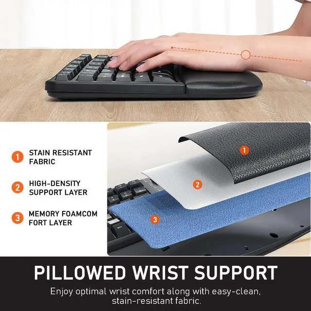 ENHANCED ERGONOMIC DESIGN 2025 New Upgrade Director-W meticulously crafted ergonomic keyboard features a curved, split-key design, adhering to a standard full-size layout. This design promotes a natural and comfortable typing position, effectively eliminating wrist strain and providing a healthier typing experience. ^^ MEMORY FOAM WRIST REST Indulge in ultimate comfort with the integrated memory foam wrist rest. It offers optimal support and cushioning for your wrists, reducing fatigue and minimizing the risk of repetitive strain injuries (RSI) during extended typing sessions. ^^ RECHARGEABLE FOR LONGEVIYT 2025 New Upgrade Director-W keyboard incorporates a built-in rechargeable battery, eliminating the need for frequent battery replacements.