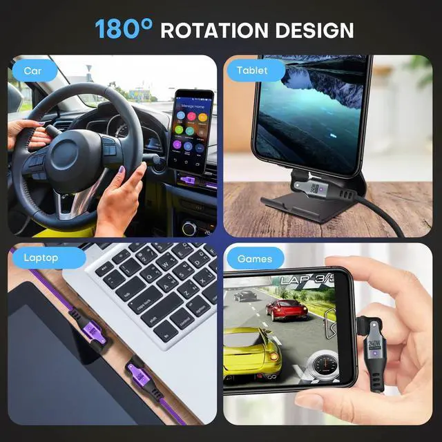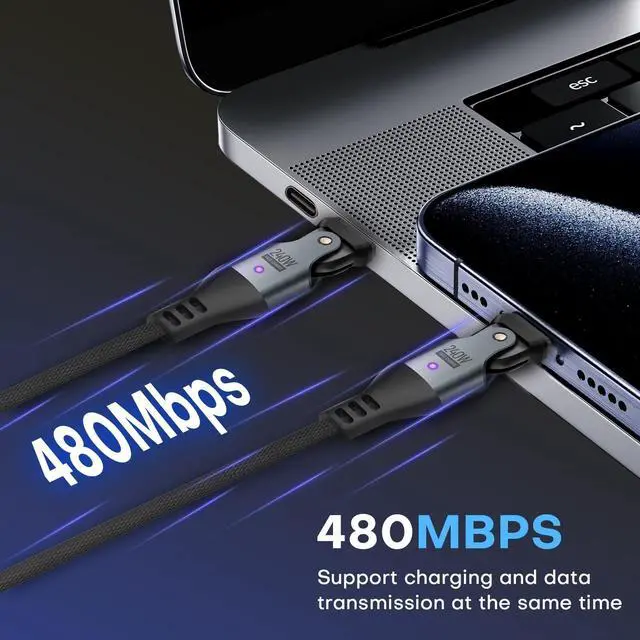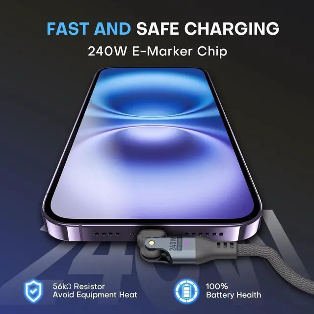 Fast Charging & SyncSupports high-speed charging up to 240W when used with a compatible charger. Max 5A Fast Charge, Transfer speed can reach 40~60MB/S (480Mbps), accelerates the charging speed by delivering 5V/3A safe charging power. ^^ 180 Rotation designSay goodbye tradition, a