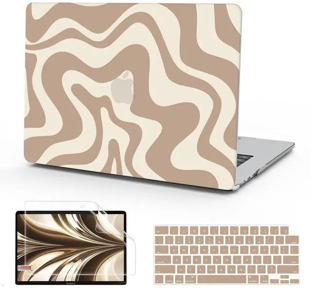 Complete Bundle: The package includes 1 brown wave top case, 1 matte clear bottom case, 1 brown keyboard cover, and 1 screen protector. Additionally, please get in touch with us if you encounter any problems with our macbook air 13.6 inch case, we will work to make it right