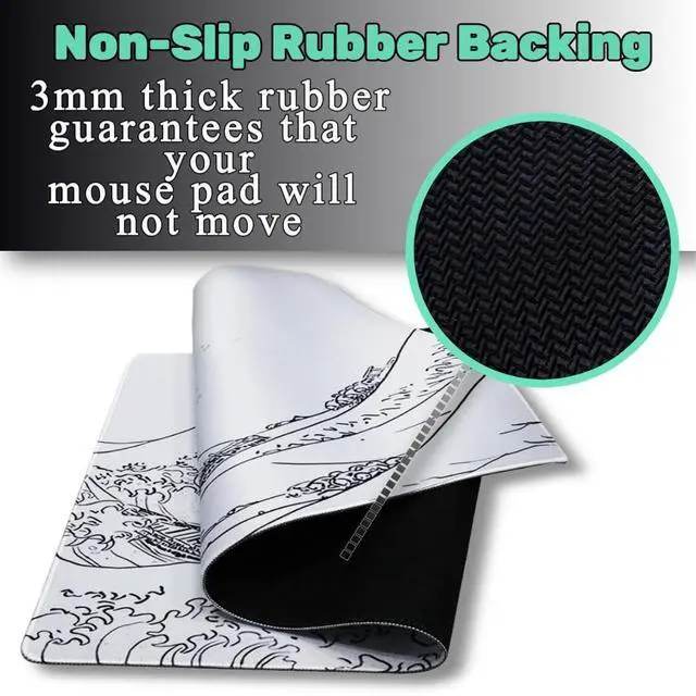 3MM THICKNESS At a thickness of 3mm instead of 2mm like most other mouse pads, our mouse pad offers the perfect balance of support and cushioning for your wrists. It creates a comfortable and ergonomic workspace while maintaining a firm surface for precise mouse movements. ^^ NON-SLIP BASE The mouse pad features a high-quality, non-slip rubber base that keeps it firmly in place, even during the most intense gaming sessions or work tasks. This ensures your mouse and keyboard stay steady, providing you with a stable and smooth surface. ^^ XXL SIZE With a generous size of 15.7" x 31.5", this mouse pad fits any normal-sized desk and provides ample room for both your mouse, keyboard and other accessories giving you the flexibility to move freely.