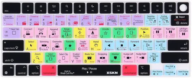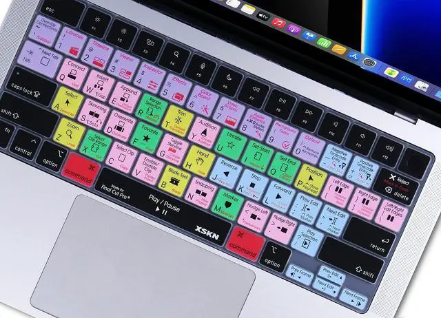 XSKN Silicone Keyboard Cover Skin for 2021 Apple MacBook Pro M1 Pro / M1 MAX Chip with Touch ID 14.2-inch Model A2442 16.2-inch Model A2485 (Shortcuts Final Cut Pro - US Version Keyboard)