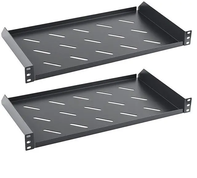 GOOD VENTILATION: Our vented rack shelf adopts a perforated bottom design to ensure optimal airflow, reduce heat accumulation, and improve ventilation. This helps prevent overheating, maintain equipment cooling, and ensure efficient operation.