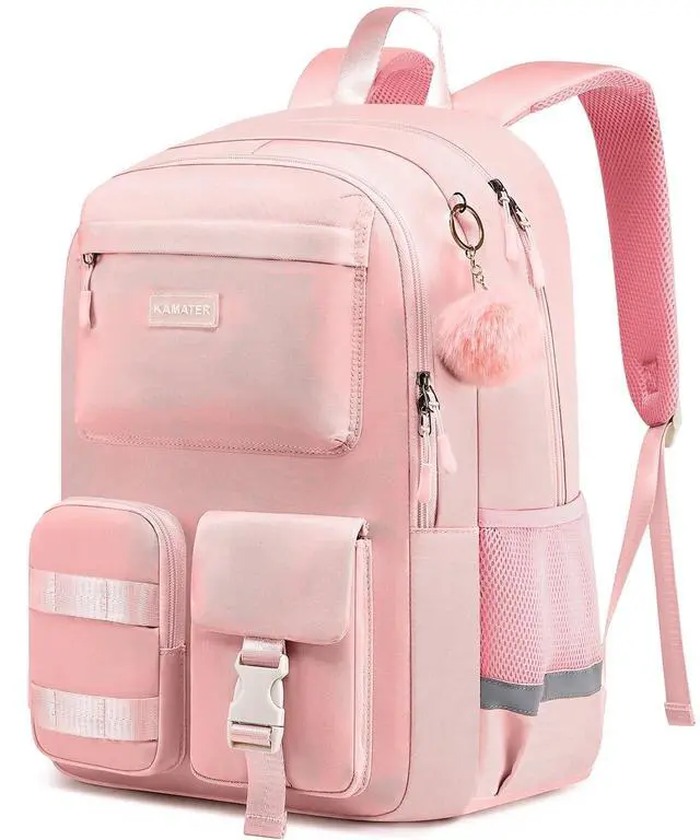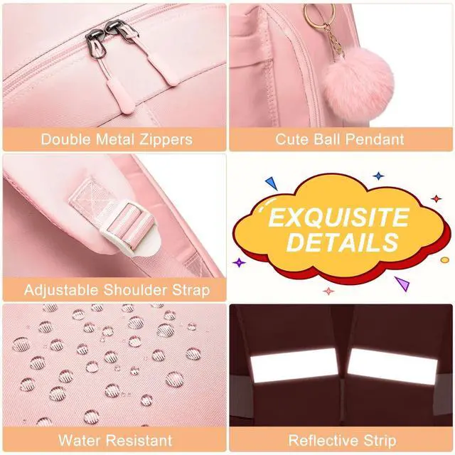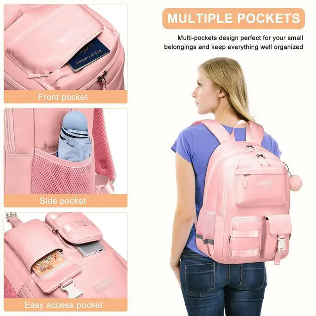 Reinforced stitching ensure long-lasting use through busy semesters. SMART ORGANIZATION = STRESS-FREE CARRYStay organized with multiple pockets: Dedicated padded laptop sleeve (fits 15.6 screens)Front zip compartment for phones/wallets/keysSide mesh pockets for umbrellas & tumblersInternal slots for pens, power banks, & IDsFASHION MEETS FUNCTIONClassic casual daypack style in versatile colors pink complements any outfitfrom campus lectures to coffee-shop study groups. Lightweight ( 0.44 kg) yet sturdy, it transitions seamlessly as a school bookbag, travel rucksack, or work backpack. PERFECT GIFT FOR STUDENTS Ideal for teens, college freshmen, and young professionals! Backed by a 180-day satisfaction guarantee. upgrade your carry with confidence!