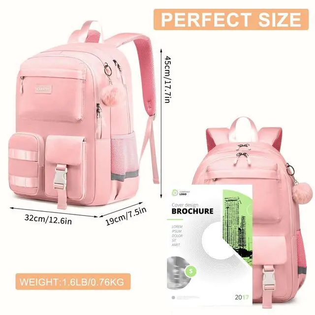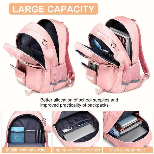 Description Stylish & Functional 15.6 Inch Laptop Backpack for Teen Girls & College Students UNIVERSAL FIT, LARGE CAPACITYDesigned for high school to college life, this spacious 15.6 inch laptop backpack features dual compartments to securely fit most 15.6 laptops, textbooks, tablets, and school essentials. Roomy enough for A4 binders, water bottles, lunch boxes + daily accessoriesperfect for class, library sessions, or weekend trips! ERGONOMIC COMFORT, STURDY DESIGNSay goodbye to sore shoulders! Padded adjustable straps distribute weight evenly, while tear-resistant nylon fabric + water-resistant polyester protect contents from spills and weather.