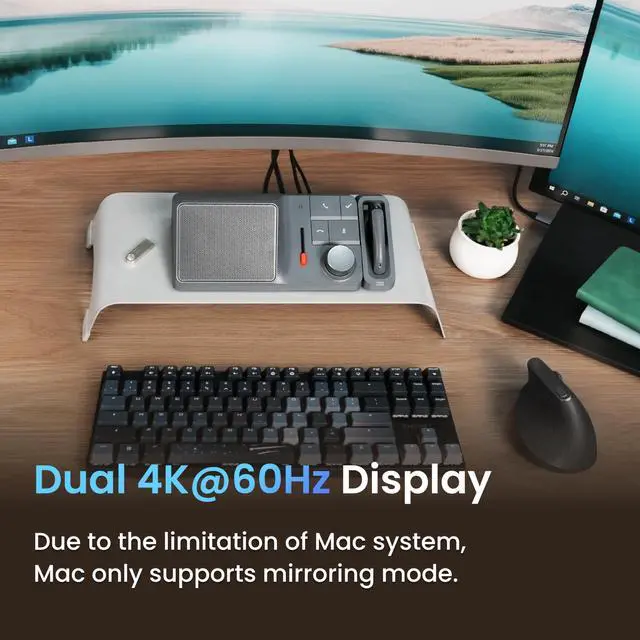 ^^ Compatibility: Supports USB-C, USB4, TB4. Compatible with MacBook (macOS 11 and newer), Windows 10 and 11, ChromeOS, and laptops equipped with DP Alt Mode and Power Delivery. Supports USB-C (HiDock end) to USB-A connection for desktops. Please note that this method does not support display output.