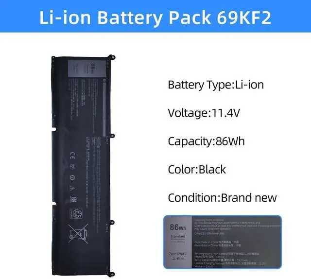 Li-ionModel: 69KF2Voltage 11.4VC apacity86Wh / 7167mAh 6-Cell.