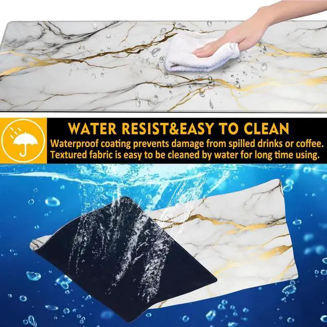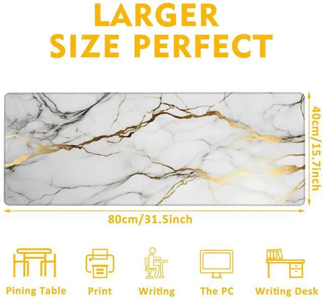 Uiaoiais Desk Mat,Gold Line Marble Gaming Mouse Pad,31.5"X15.7" Large Desk Pad with Stitched Edge Non-Slip Base Keyboard Big Mouse Pad for Office Home Work Gaming-White
