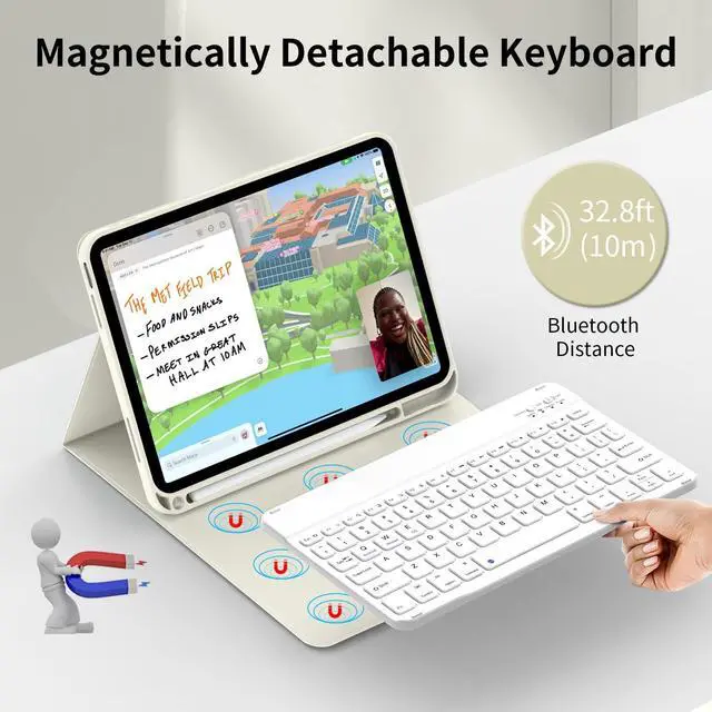 Premium Material: JKSML for 10.9 inch iPad case with keyboard is made of good quality PU. Soft, smooth and it gives a Comfortable feeling. The interior case is made of high-quality flexible TPU, honeycomb grid pattern design is better for heat release. Precise cutout allows full access to all ports, sensors, speakers, camera and microphone ^^ Magnetically Detachable