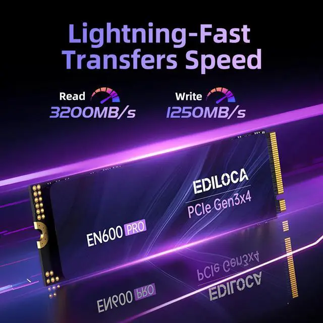 Excellent PerformanceEDILOCA EN600 Pro M. 2 SSD adopts NVMe 1.3 technology to upgrade your PC performance to load up faster and transfer data faster. This 256GB SSD adds graphene heat dissipation stickers to provide effective heat dissipation control for high-performance solid-state drives, so that the hard drives can work durable and reliable. ^^ High