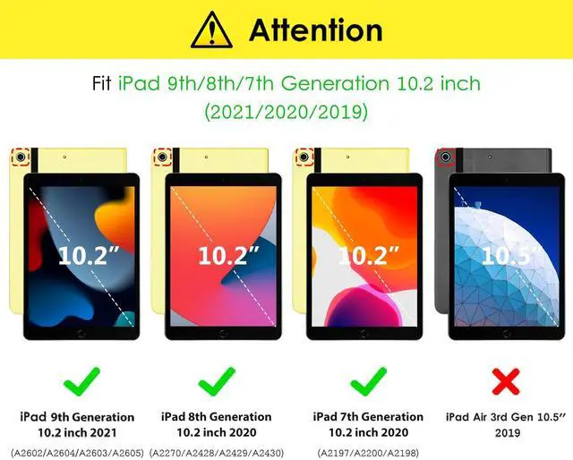 Compatibility - Designed for the Apple iPad 9th/8th/7th generation 10.2" 2021/2020/2019 released(Model Number: A2602/A2604/A2603/A2605/A2270/A2428/A2429/A2430/A2197/A2200/A2198). Not compatible with any other iPad model