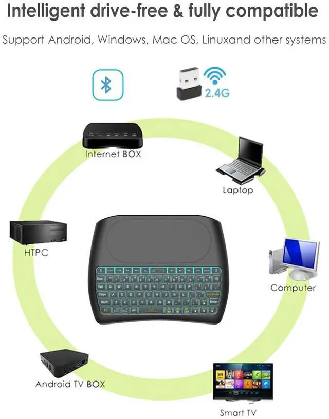 Backlit Addition: The mini bluetooth keyboard comes with 7 colorful backlight and white color choice as well as 3 brightness settings, it's easy to use and see the letters even in a darkened room ^^ What's in the