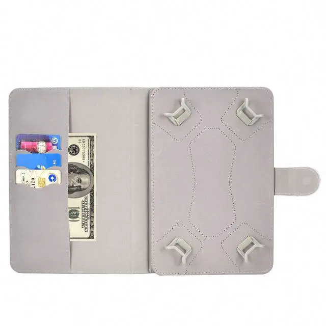 Inch Tablet Compatibility: This case is designed for all around 9.5" - 10.5" tablet, such as 9.7 inch Apple iPad series, iPad Pro 10.5, Samsung Galaxy 9.7 inch series, Kindle Fire HD 10 (2015/2017), Dragon Touch, Chromo Inc, ProntoTec, NeuTab, Nextbook, Tagital, Alldaymall, iRulu, RCA, iView Android tablet etc. ( No camera opening; NOT support auto sleep/wake for any tablets )Features: 1) Soft Synthetic PU leather tablet cover gives full protection and easy installation. 2) Convenient Card Slots & Pocket Holder wallet style, manage your various cards, notes, tickets and money on the go. 3) Equipped with 4 flexible clasps, easily clip-on and protect your device from scratches, dust and splashing water. 4) Stand feature, prop up the tablet safely and hands free reading or watching videos. 5) Powerful magnet folio case, keeps the front cover sealed and open or shut flexibly. 6) Lightweight cover with comfortable grip and many fun colors for option. Ideal for home, work and travel.