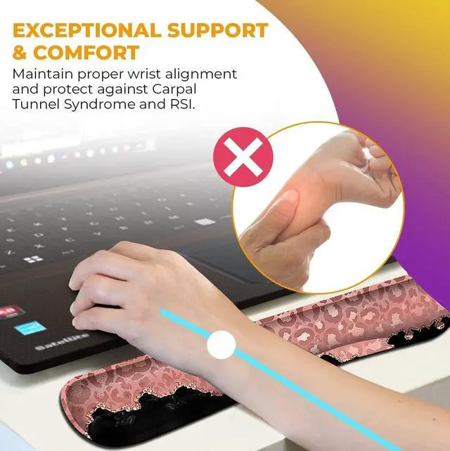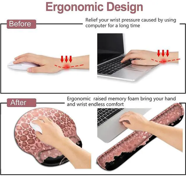 Gel PadFilled with excellent cooling gel. Soft and comfortable gel padded pad. When your hand leaves it, it will slowly rebound without deformation. This wrist protector mouse pad is ergonomically designed to protect your wrist joints, reduce wrist fatigue and provide maximum comfort and support for your wrist. ^^ Ultra-smooth SurfaceHigh line count and smooth surfaces optimize optical and laser sensors for faster and more accurate mouse tracking. ^^ Non-Slip Rubber BaseHigh-quality non-slip rubber base, the back of the mouse pad can firmly grasp the desktop, compared with the normal mouse pad, the friction resistance is increased by 99%, it can prevent any accidental movement of the mouse pad while typing.