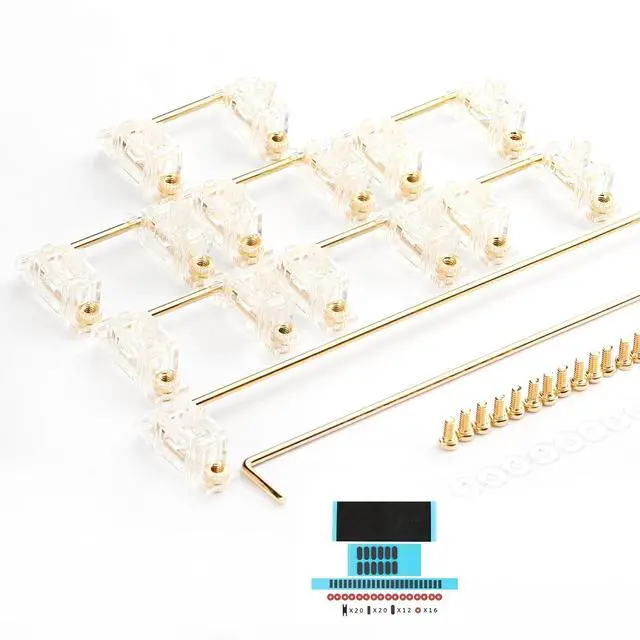 Package included: 2u wires 7, 6.25u/7u wire 1,housings/stems/screw/washers x 16 pcs,come with stab films (PCB stabilizer pads are added when necessary, do not use all of them or they will go mute).