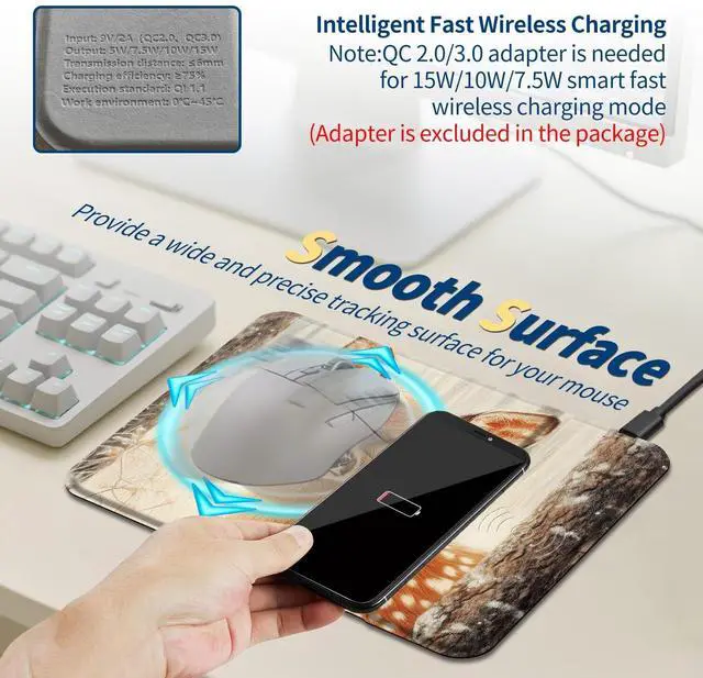 • 2-in-1 Wireless Charging + Mouse Pad Charge your Qi-enabled phone effortlessly while working or gaming. Just place it on the charging areano cables, no clutter
