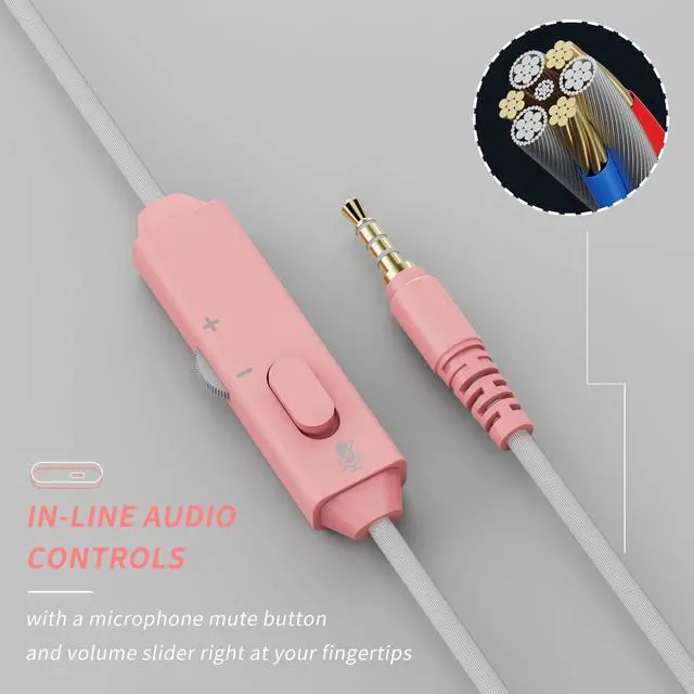 ^^ Convenient Controls: The built-in volume control and microphone mute button on the braided cable make it easy to adjust audio settings and mute the mic when necessary. The gaming headphones are perfect for on-the-fly adjustments.