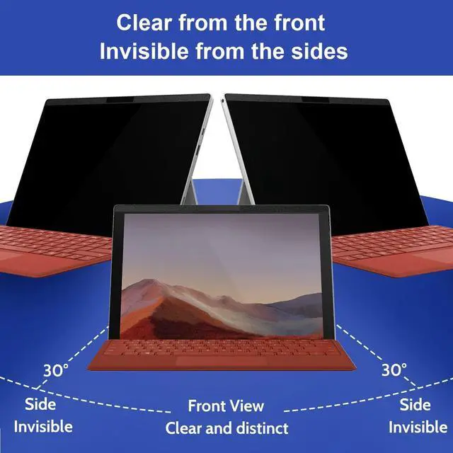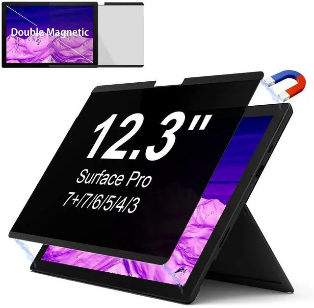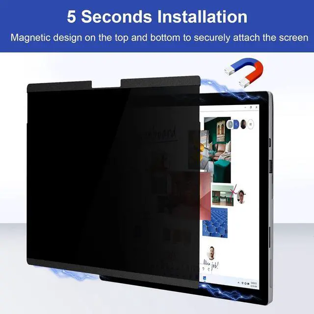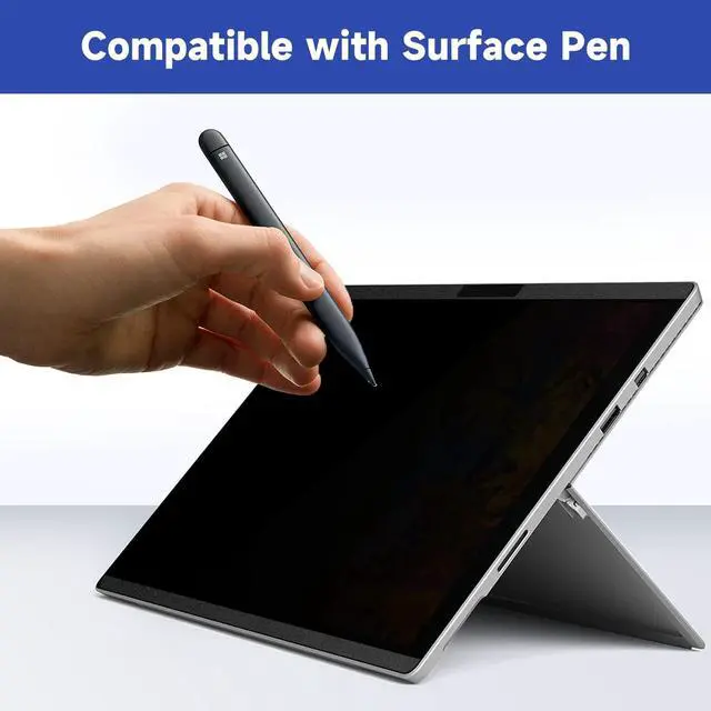 CompatibilityOnly designed for Surface Pro 7 / Surface Pro 7 plus/ Surface Pro 6/ Surface Pro 5/ Surface Pro 4 12.3 inch. Compatible with Stylus pens and keeps touchscreen sensitive. This privacy filter is the ideal surface accessories. ^^ Magnetic InstallationUpdated with strong NdFeB magnets, it keep strong magnetic attraction even after 100, 000 uses. During use, the surface pro privacy screen sticks tightly to the screen without falling and sliding. Installation can be done in 5 seconds, align the screen, the surface privacy filter automatically attach to the screen smoothly.