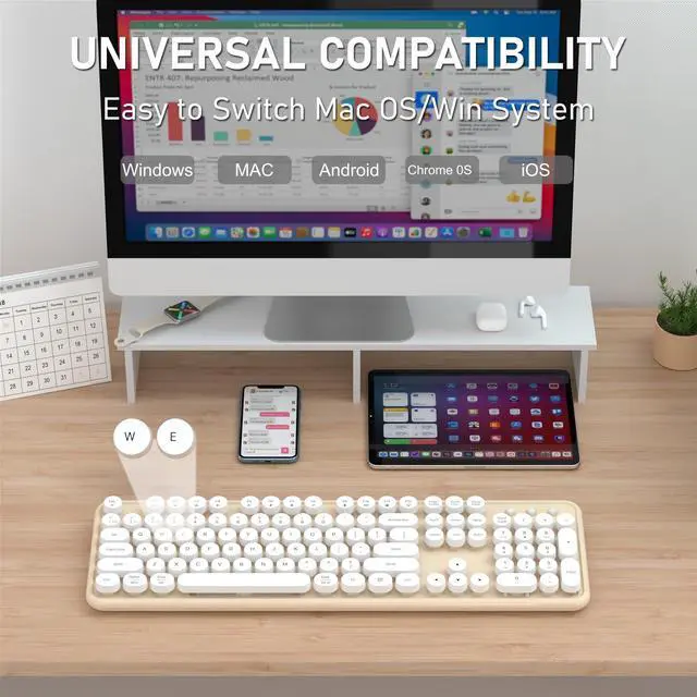 COLORFUL BLUETOOTH KEYBOARD: Typewriter retro round keycaps and clicking sounds make you enjoy typing. The 2024 new colors change the classic black impression of Bluetooth keyboards and add a different look to your desk ^^